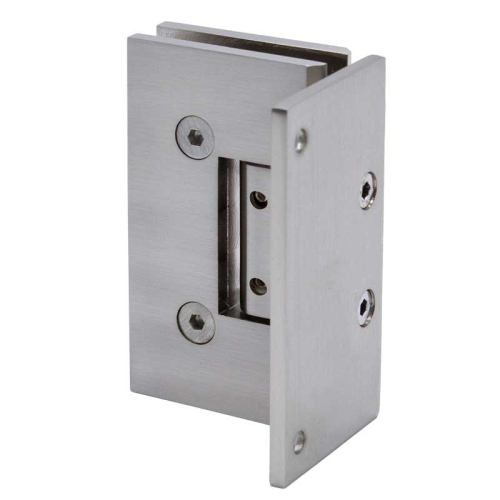 Using three hinges with 5/16″ to 1/2″ glass (8 to 12 mm) the hinge will hold up to 120 lbs. (54 kg) with a maximum door width of 32″ (813 mm).