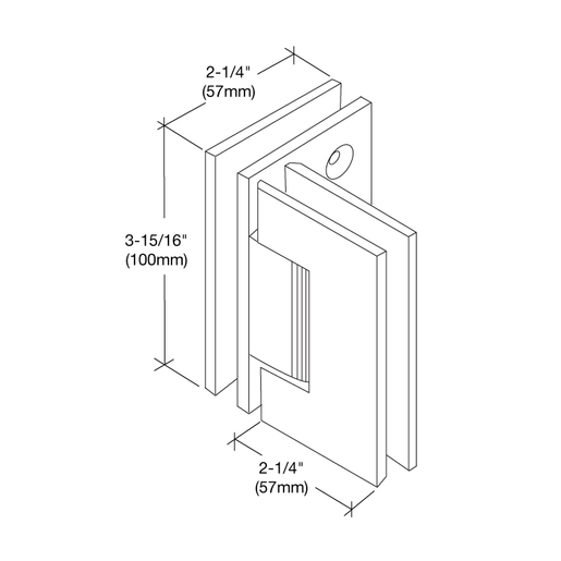 Using two hinges with 3/8″ to 1/2″ glass (10 to 12 mm) the hinge will hold up to 110 lbs. (50 kg) with a maximum door width of 36″ (914 mm).