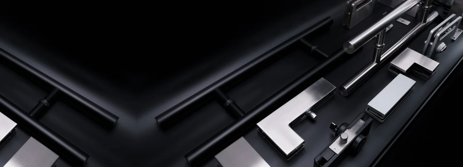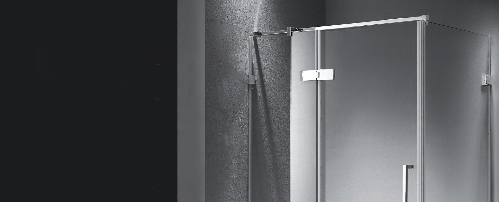 Selected bathroom glass door metal accessories to create a modern bathroom space.