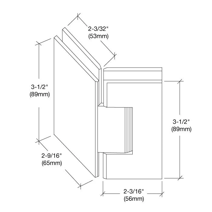 Using three hinges with 5/16″ to 1/2″ glass (8 to 12 mm) the hinge will hold up to 120 lbs. (54 kg) with a maximum door width of 32″ (813 mm).