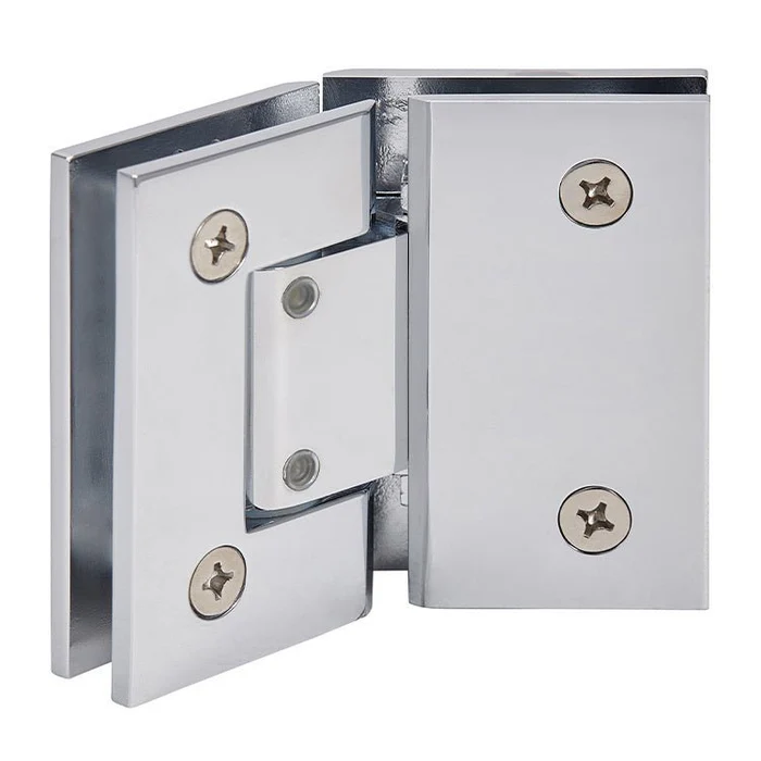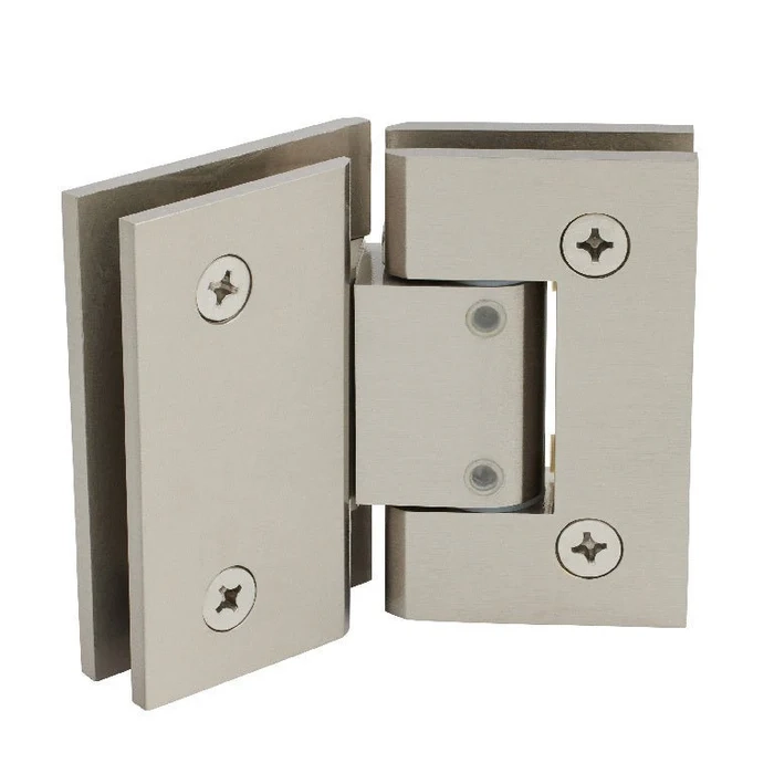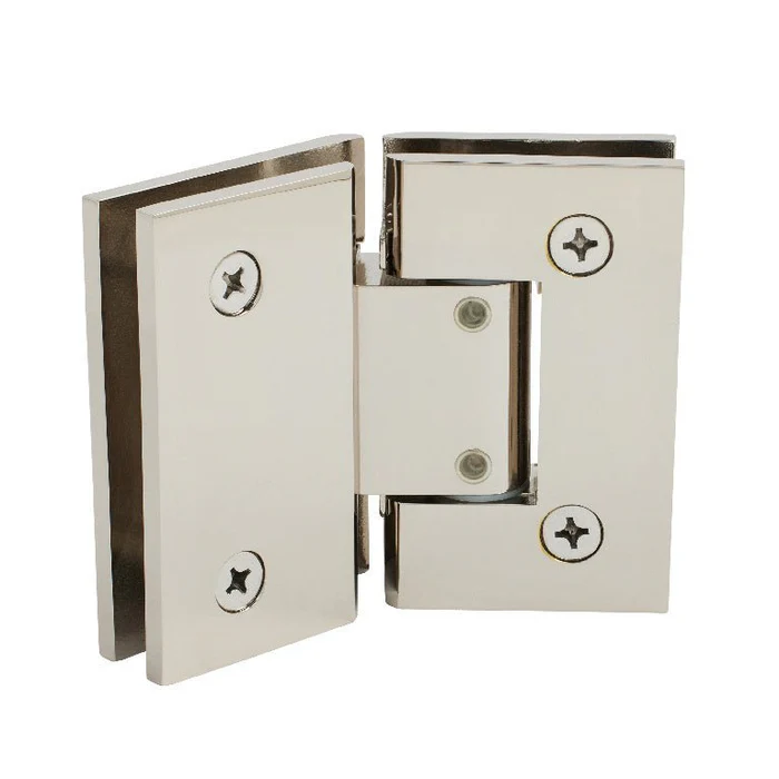 Using three hinges with 5/16″ to 1/2″ glass (8 to 12 mm) the hinge will hold up to 120 lbs. (54 kg) with a maximum door width of 32″ (813 mm).