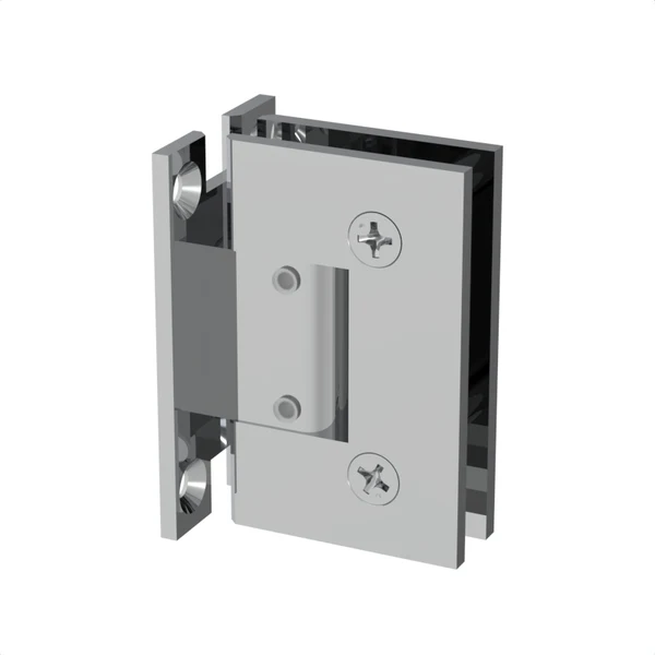 Using three hinges with 3/8″ to 1/2″ glass (10 to 12 mm) the hinge will hold up to 140 lbs. (63 kg) with a maximum door width of 36″ (914 mm).